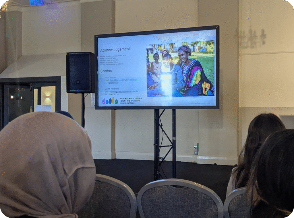 Alongside the presentation, the Tara Community Care team was also present across the two-day conference, engaging in discussions, attending sessions, and connecting with other organisations and community groups working in multicultural health, disability, and community services.
