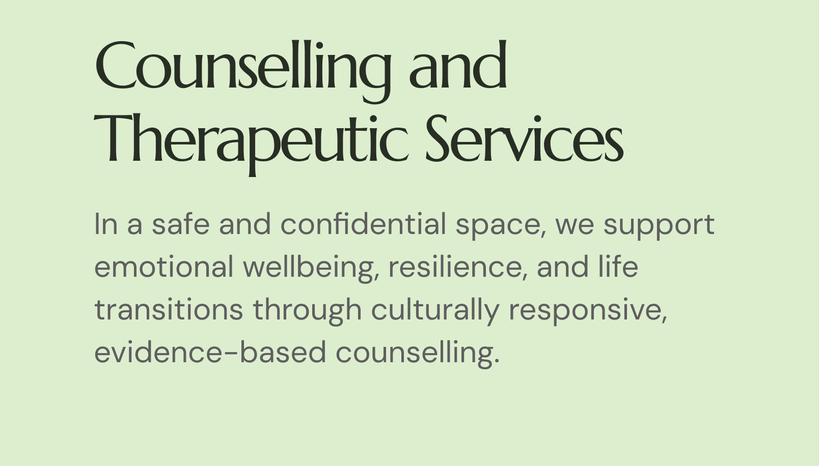 and life transitions through culturally responsive, evidence-based counselling.